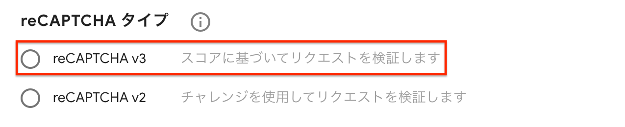 そのため、reCAPTCHAタイプは「reCAPTCHA v3」を選択します。