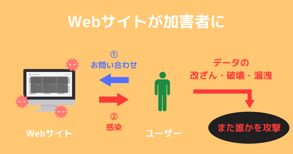 サイトが攻撃されたときに受ける被害が大きいということも重要なのですが、それ以上に、セキュリティ対策を怠るとWebサイトが加害者になり得てしまうということも覚えておきましょう。