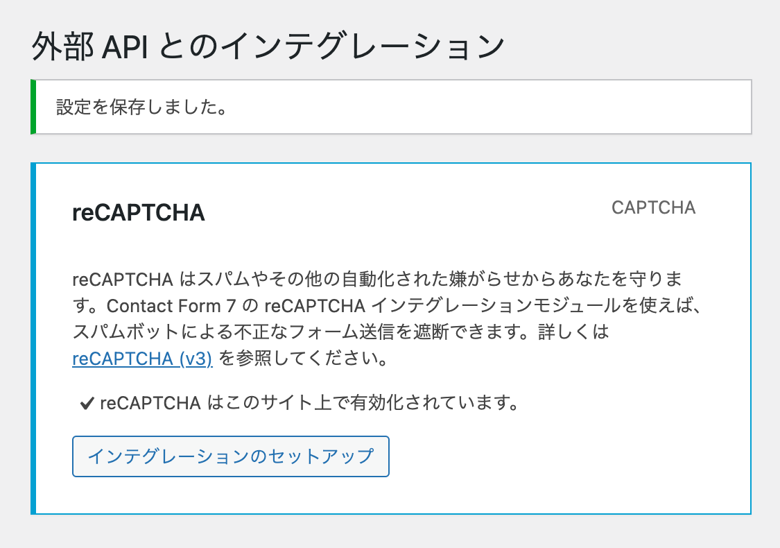 次のような画面が表示されれば、reCAPTCHAの有効化は完了です。