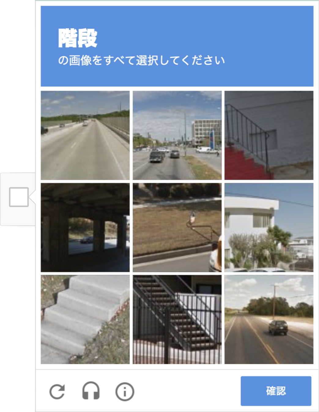 reCAPTCHAには種類がいくつかあり、次のような画像を選ばせる問題を出すタイプはよく知られていると思います。