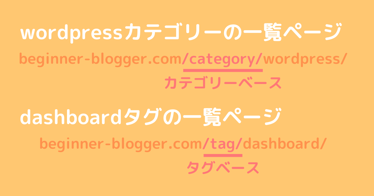 となります。また、「/tag/」の部分をタグベースといい、こちらもカテゴリーベースと同様に他のどんなタグの一覧ページのURLにも含まれます。