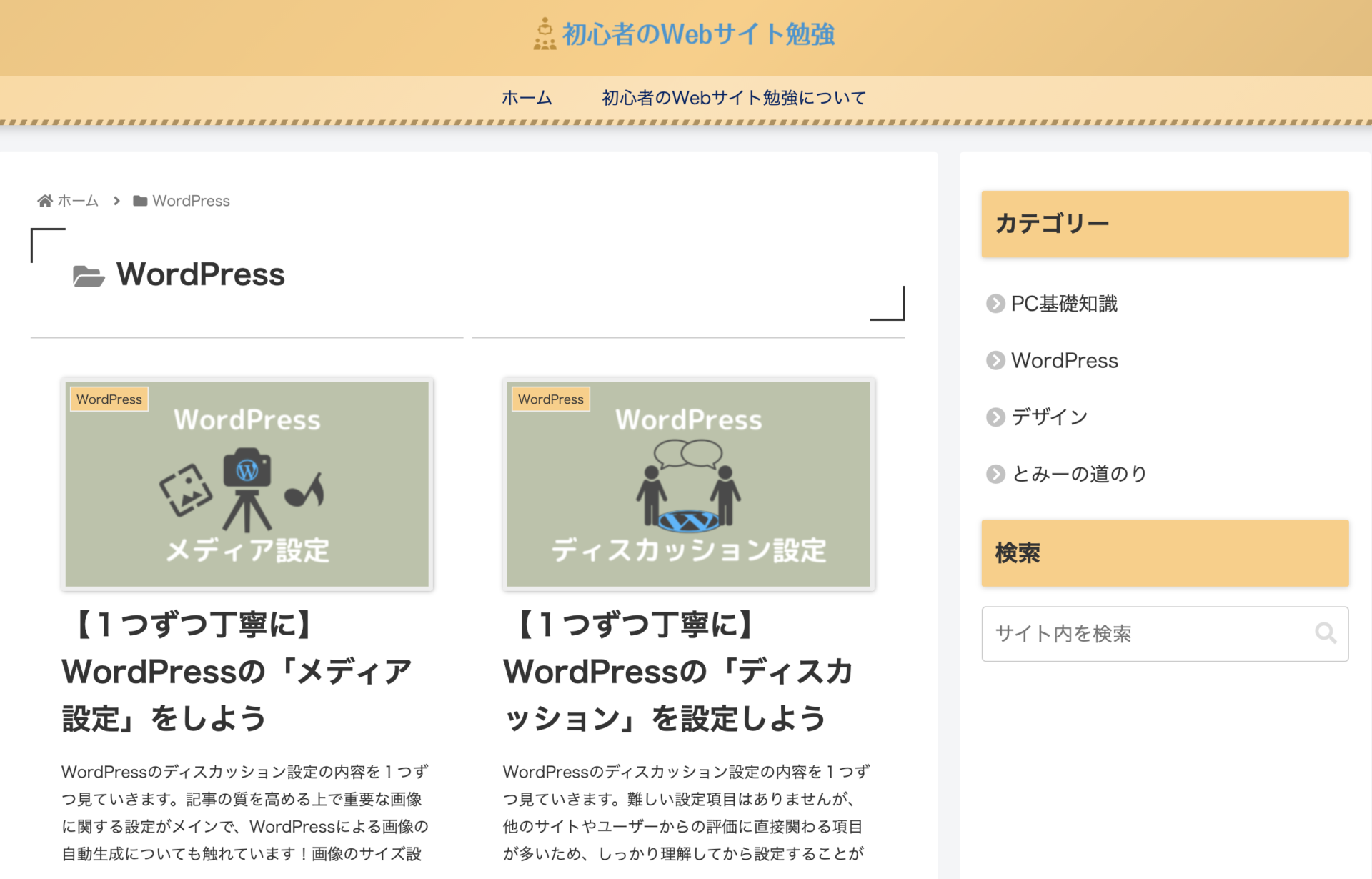 例えば、カテゴリー「WordPress」の一覧ページは画像のようになっています。