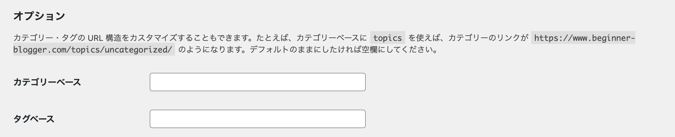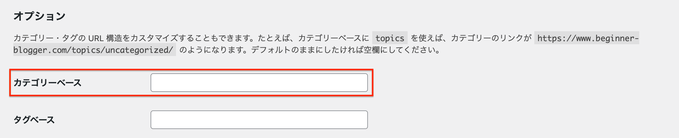 カテゴリーベースの表記をカスタマイズしたい場合はここを設定しましょう。
