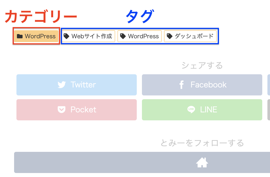 カテゴリーやタグは記事がどんな内容を扱っているかを表す短い言葉で、この記事の場合は