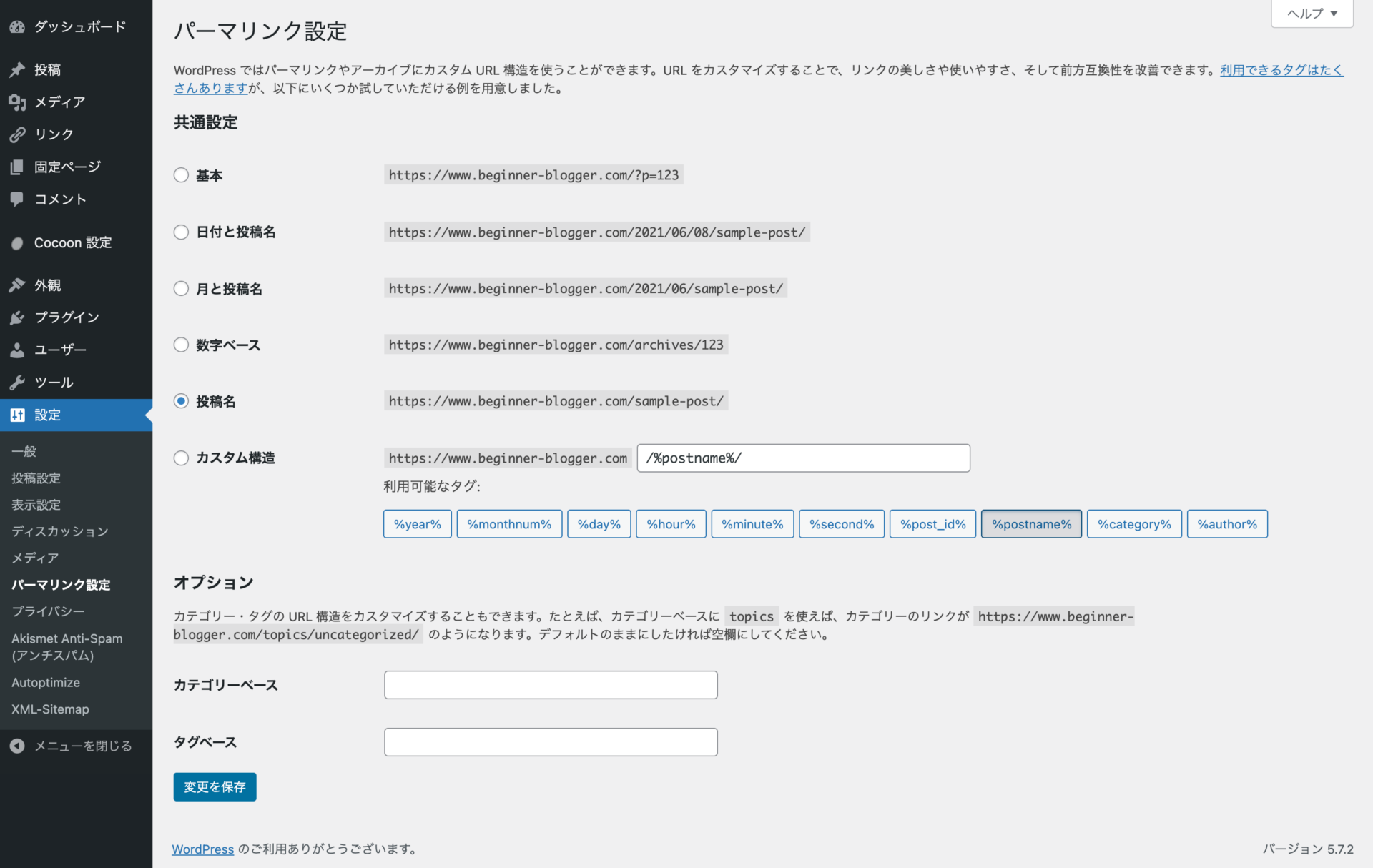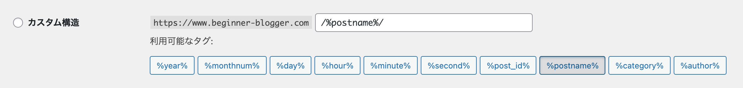 | %postname% | 投稿名 | sample-post |