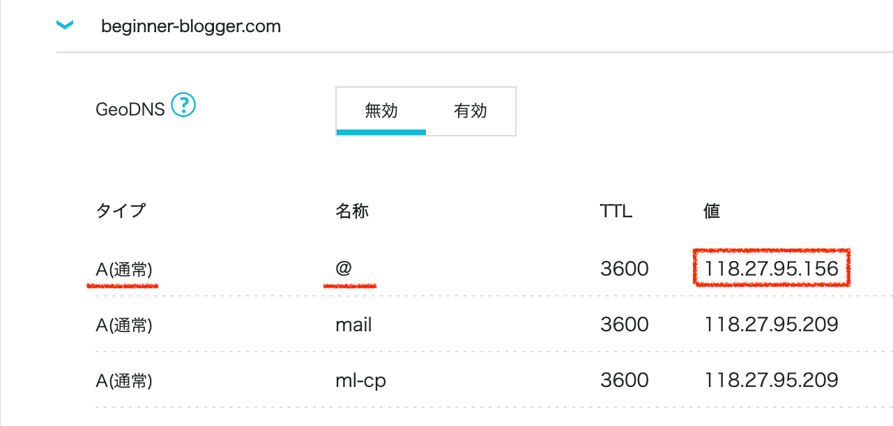 ドメイン名をクリックすると、隠れていた数字や文字列が表示されます。この中で、