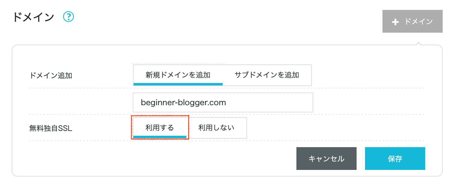 特別な理由がない限り、無料独自SSLは「利用する」にしましょう。