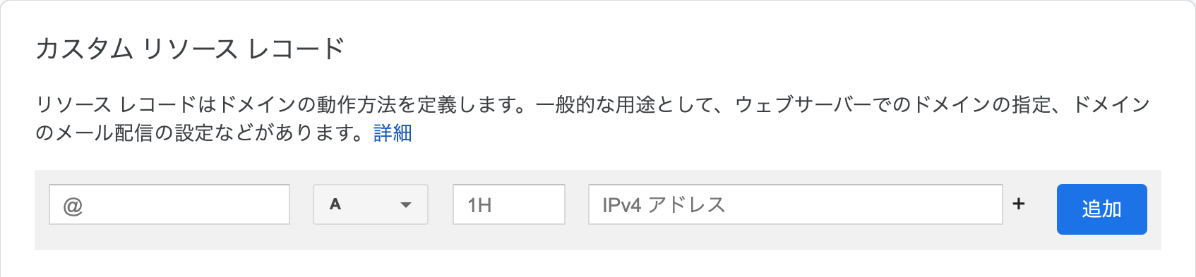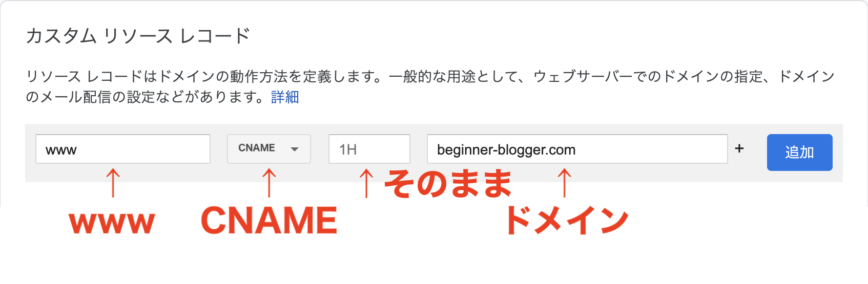 画面を下の方まで移動させると、「カスタムリソースレコード」という欄が現れます。