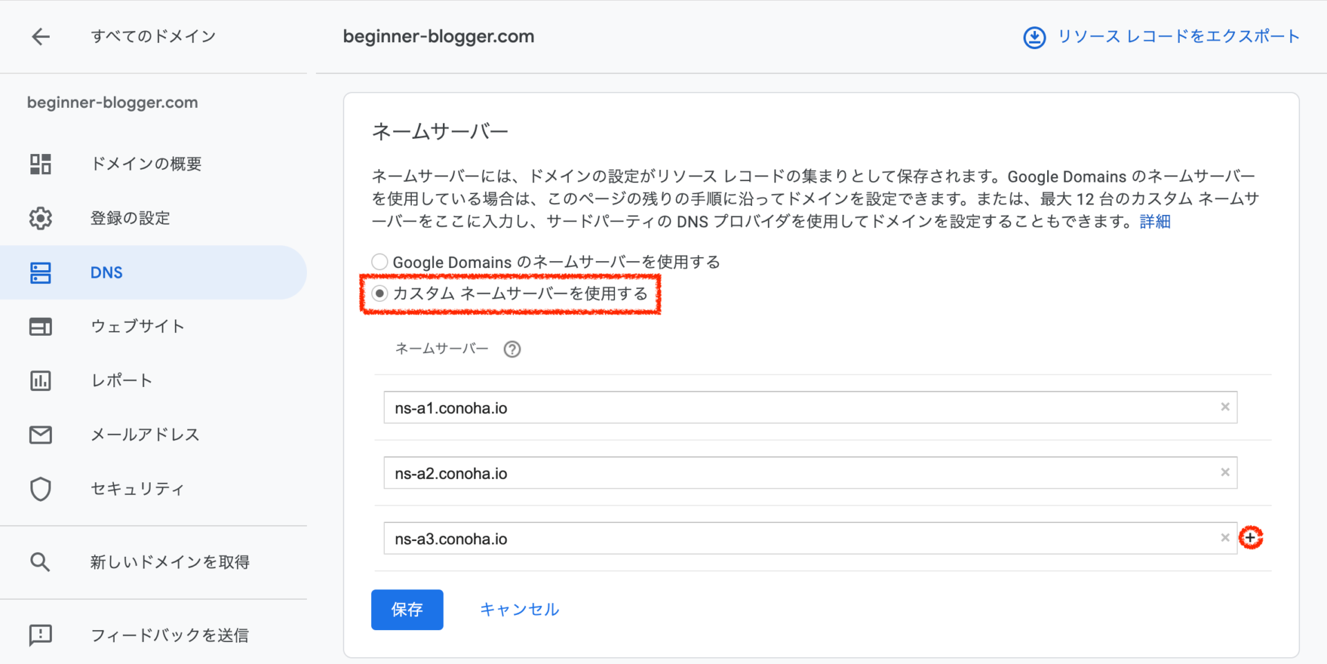 再びGoogle Domainsの管理画面へ戻りましょう。