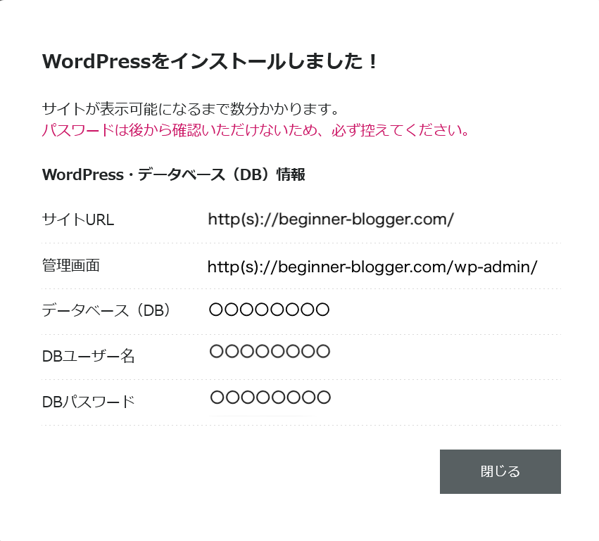 お疲れさまでした!これでWebサイトを運営する準備のほとんどが完了しました。あとはWordPressにログインして細かい設定をしていくだけです。