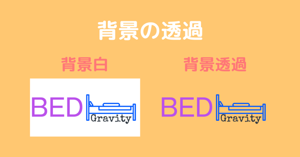画像の例ではオレンジ色の画像の上にロゴを貼り付けているのですが、背景を透過した場合はロゴがうまく馴染んでいるのに対し、透過しない場合はロゴがほかの部分と区別され輪郭がはっきりわかります。