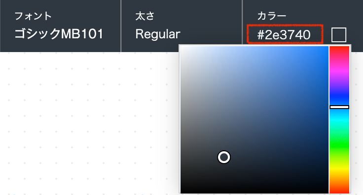 文字の色はカラーパネルから選ぶことができます。カラーコードを知っている方は、画像の赤枠部分に直接入力しても構いません。