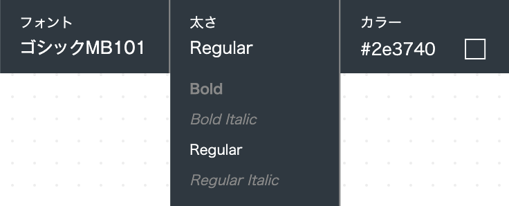 太さはRegular(通常)、Bold(太め)、Light(細め)から選ぶことができ、イタリック(斜体)にすることもできます。