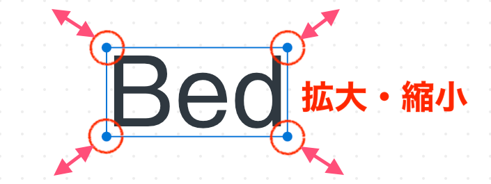 文字を大きくしたり小さくしたりしたい場合は、文字をクリックしたときに現れる青枠の四隅の点をドラッグ&ドロップすればOKです。