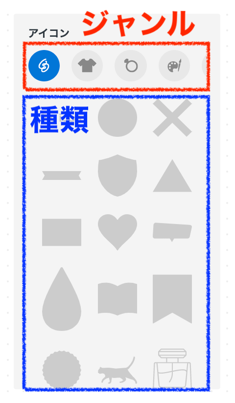 1段目でアイコンのジャンルを選びます。
