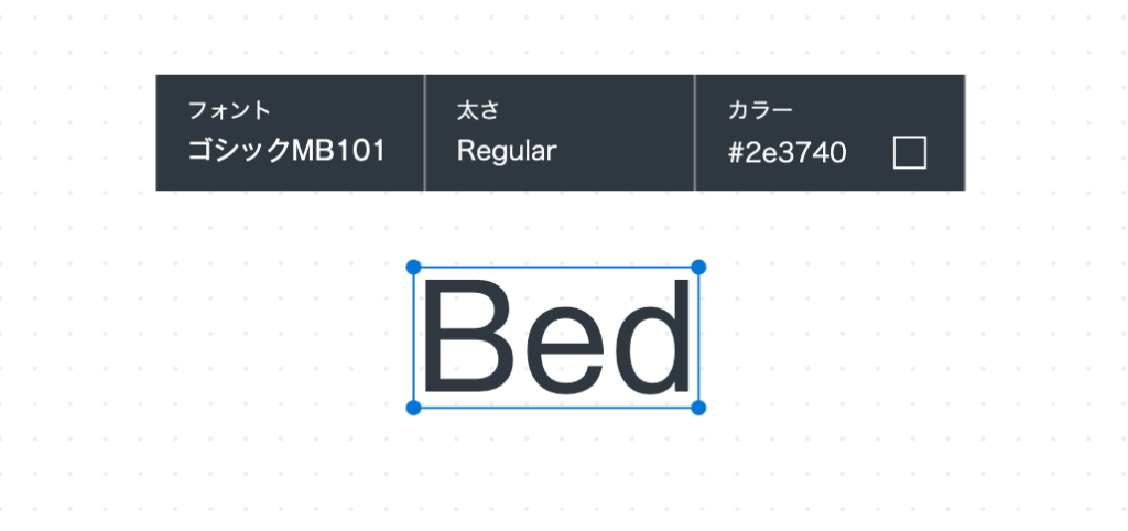 画面中央に表示されている文字をクリックすると、「フォント」、「太さ」、「カラー」と書かれたツールバーが現れます。