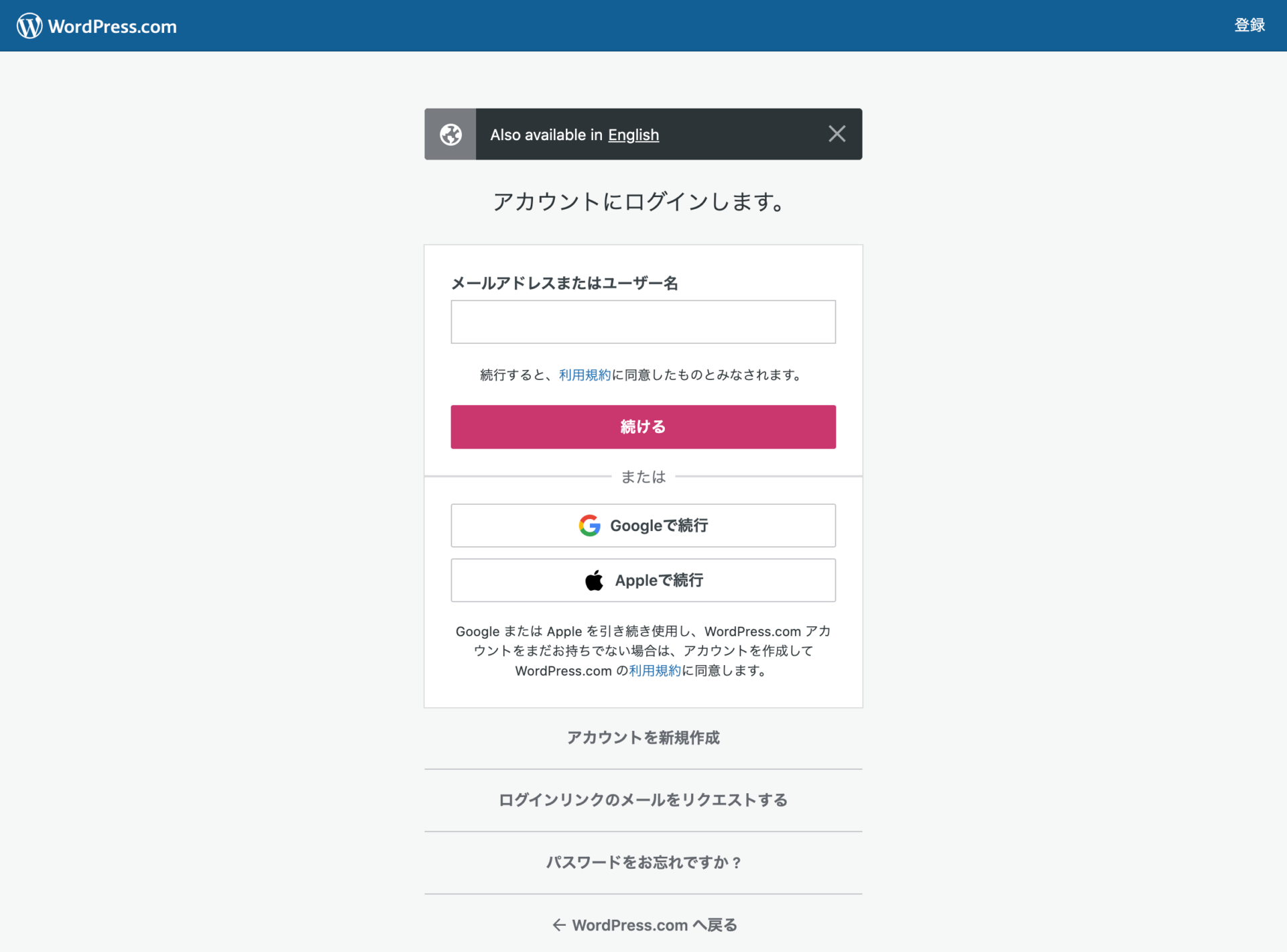 ユーザー名やパスワードを入力してもログインすることはできません。