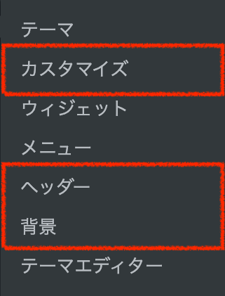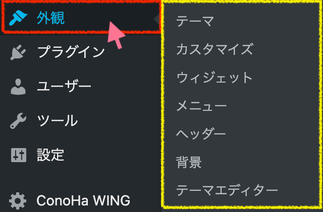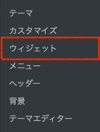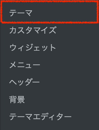 サイドメニューの「外観」にカーソルを当てると、サブメニューが現れます。