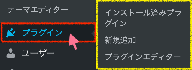 サイドメニューの「プラグイン」にカーソルを当てると、サブメニューが現れます。