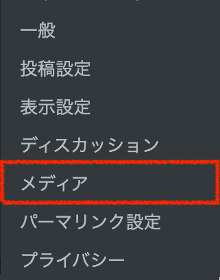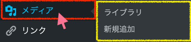 サイドメニューの「メディア」にカーソルを当てると、サブメニューが現れます。