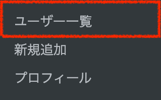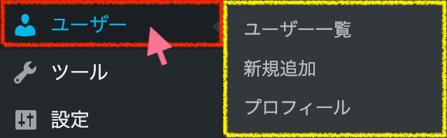 サイドメニューの「ユーザー」にカーソルを当てると、サブメニューが現れます。