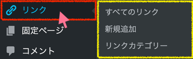 サイドメニューの「リンク」にカーソルを当てると、サブメニューが現れます。