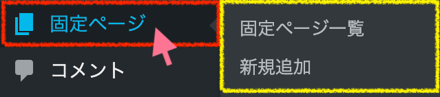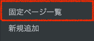サイドメニューの「固定ページ」にカーソルを当てると、サブメニューが現れます。
