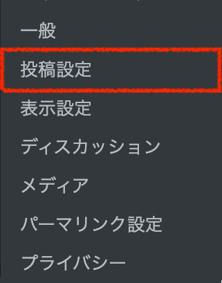 投稿に関する設定はここでします。投稿する記事のカテゴリーなどを設定できます。