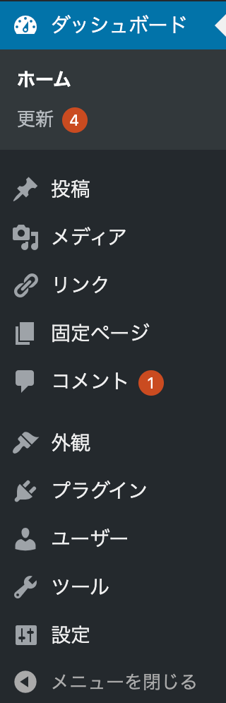 - テーマやプラグインによっては、表示されるメニューが増減することがあります。