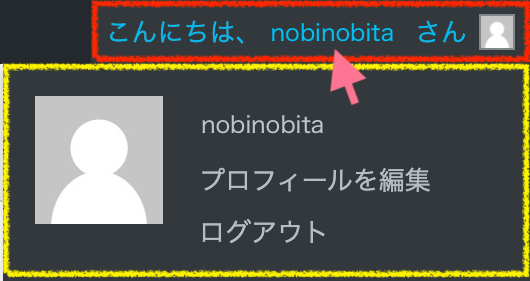 | こんにちは、[ユーザー名]さん | ユーザー名 | 現在ログインしているユーザーのプロフィールを編集 |