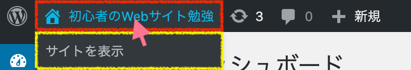 | サイト名 | サイトを表示 | WordPressの管理画面からWebサイトに切り替え |