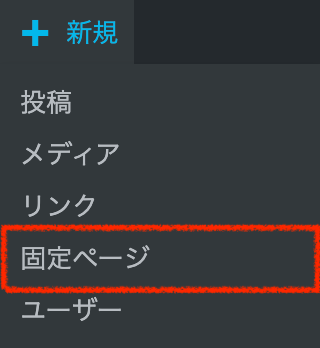 | 固定ページ | 固定ページ一覧 | 作成した固定ページの一覧を表示 |